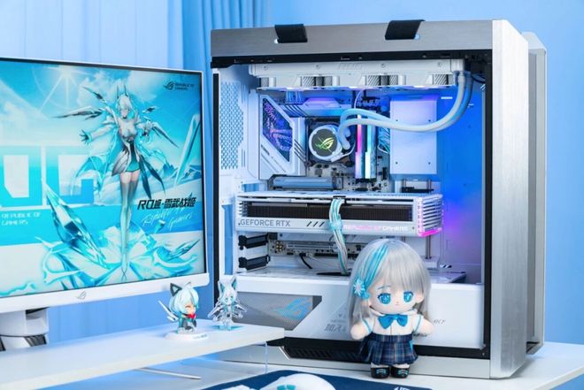 银白机能战甲+浅色PCB+浅色内存插槽,再加上雪武战姬元素和炫彩ROG LOGO,树立次元美学新标杆!